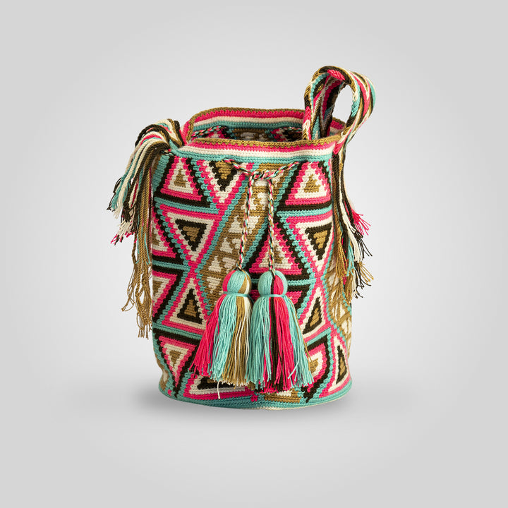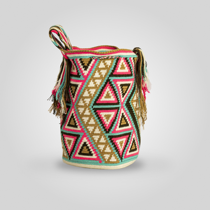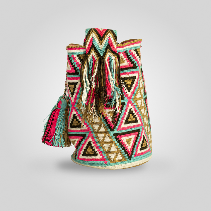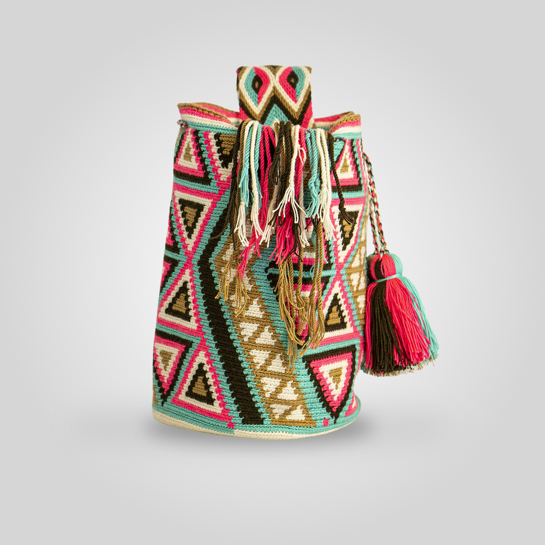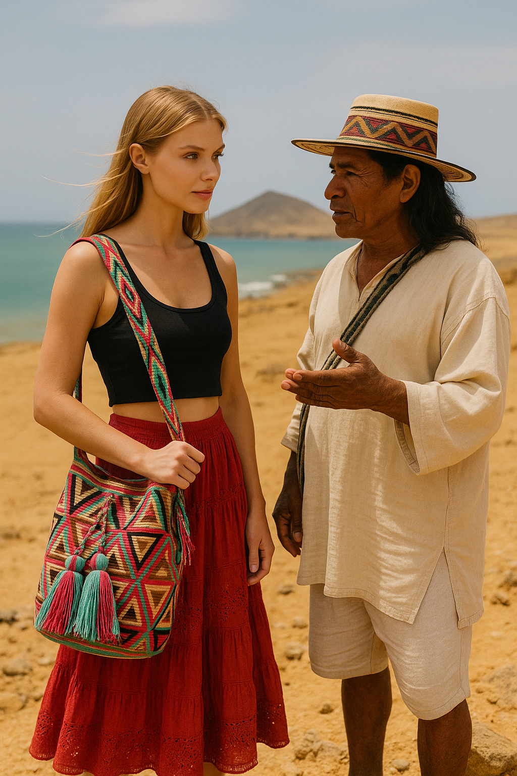 La **mochila grande "Pütchipü'ü"** rinde homenaje a los **palabreros wayuu**, figuras clave en la resolución de conflictos dentro de la comunidad. Su nombre evoca el papel de estos mediadores, quienes utilizan el diálogo y la palabra para mantener la paz y el equilibrio social. Al igual que el palabrero, esta mochila representa la **sabiduría, la paciencia y la tradición**.