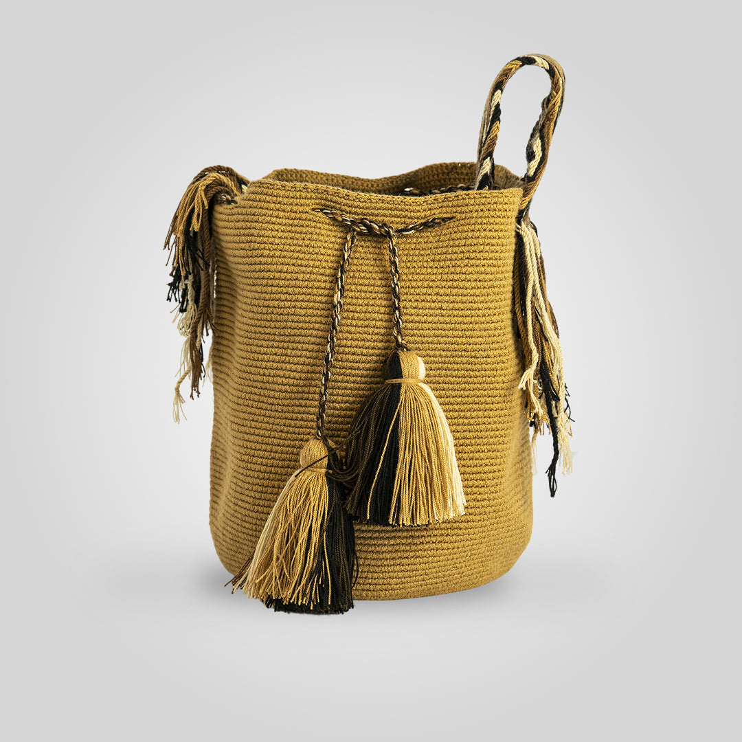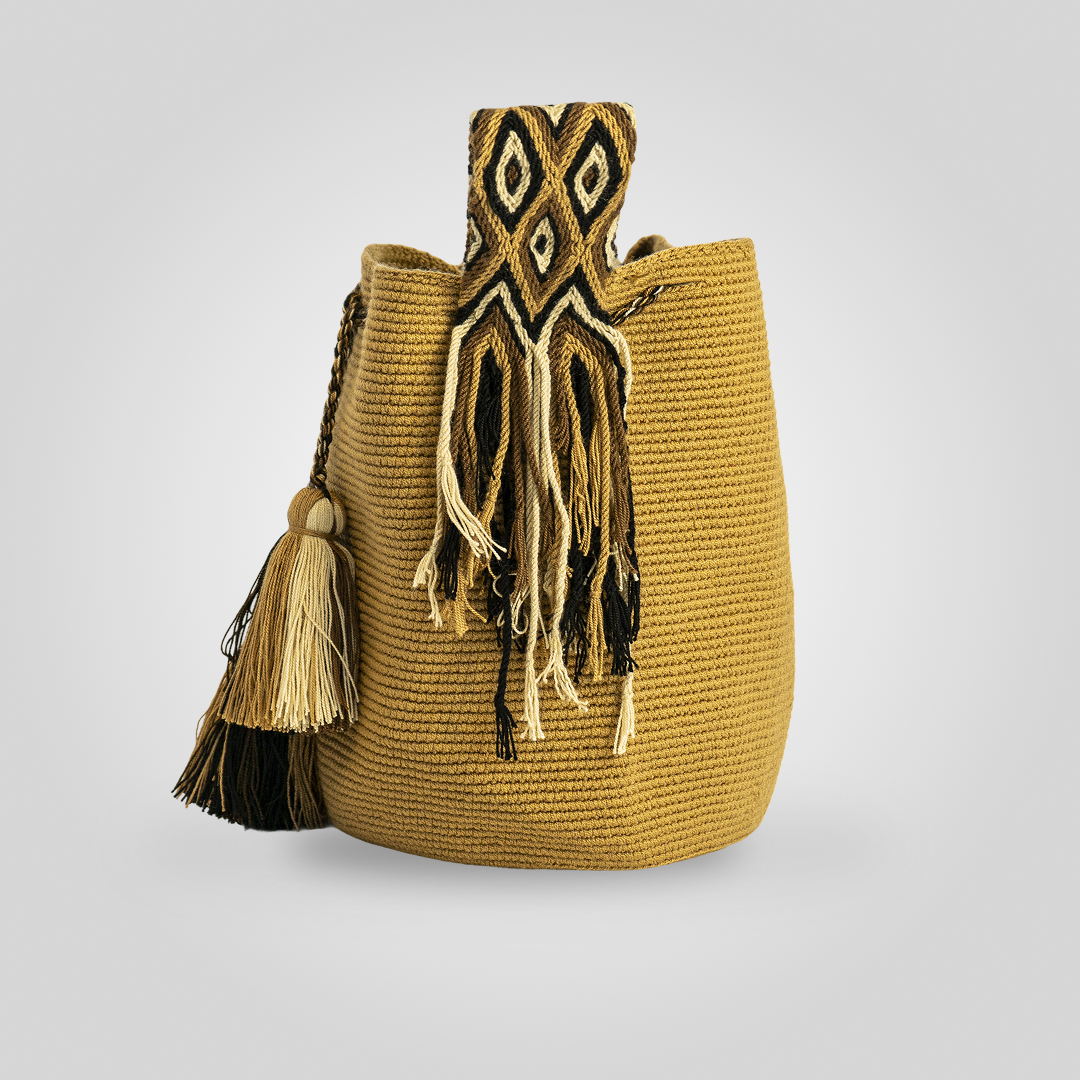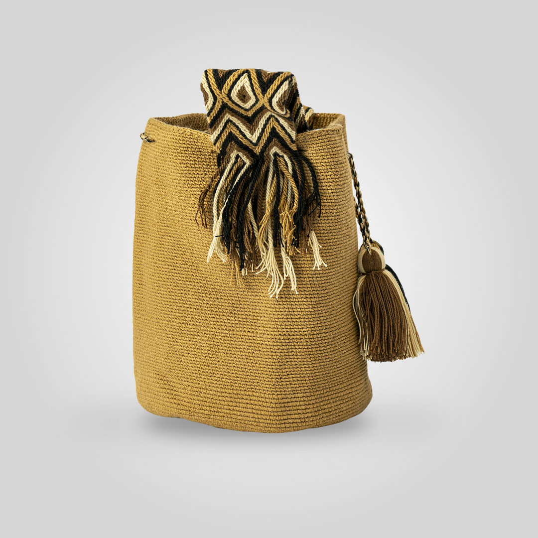 Mochila Grande Wayuu Unicolor Caqui "Jasai" C10