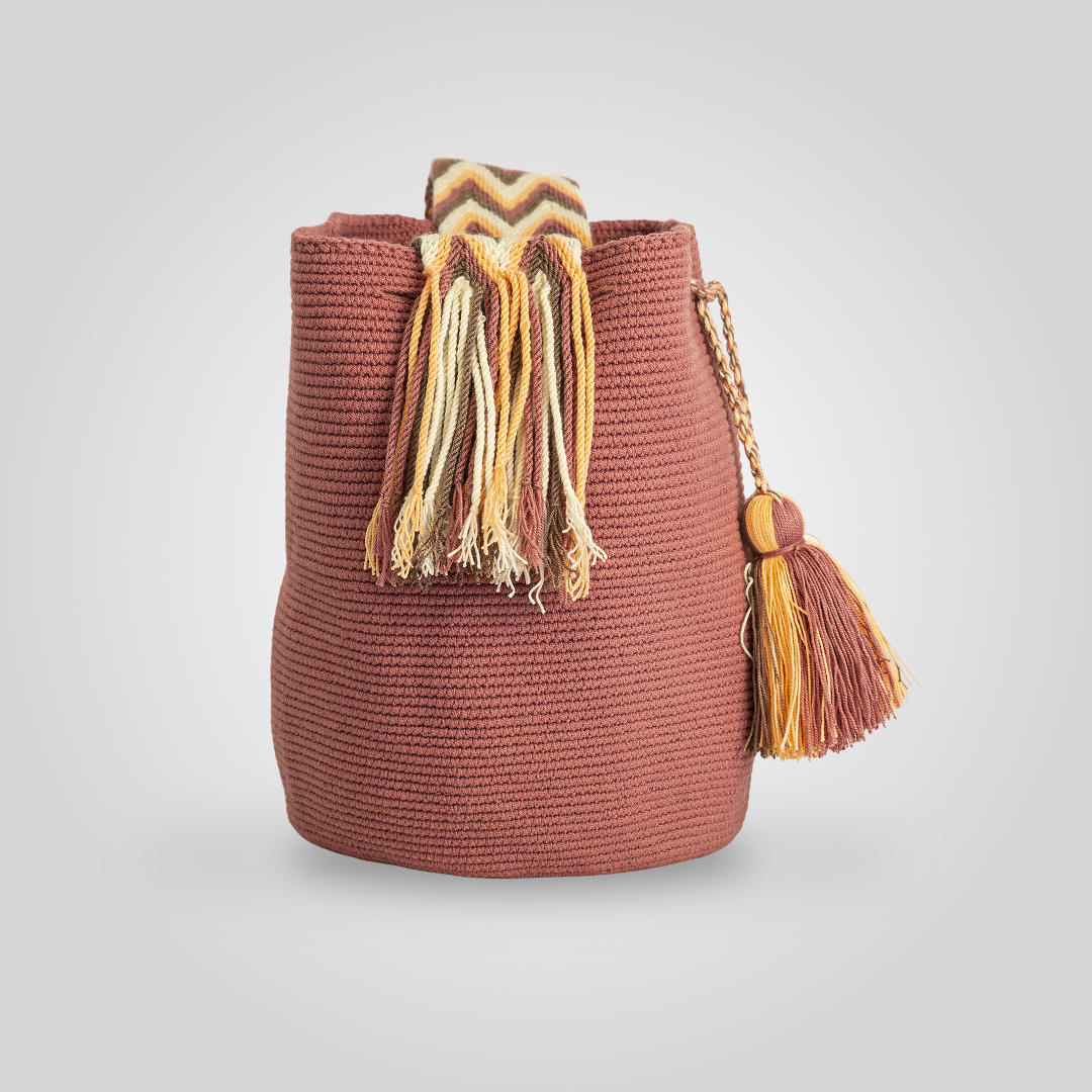 La mochila Wayuu guayaba unicolor es una pieza artesanal que destaca por su tono cálido y vibrante. En la cultura Wayuu, los colores tienen un significado profundo, y el guayaba, un tono entre rosado y anaranjado, puede representar la alegría, la creatividad y la conexión con la tierra. Este color evoca la energía del amanecer y la vitalidad de la naturaleza.